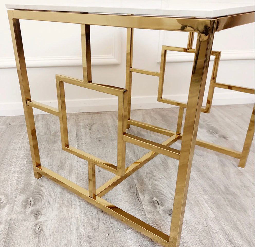 Complete the Geo look in your home with our Geo Lamp Table. Featuring a gold squared geometric base with slimline Polar White Sintered Stone Top. This is a great addition to any lounge area. Complete the look with our matching Geo Coffee and Console Table.