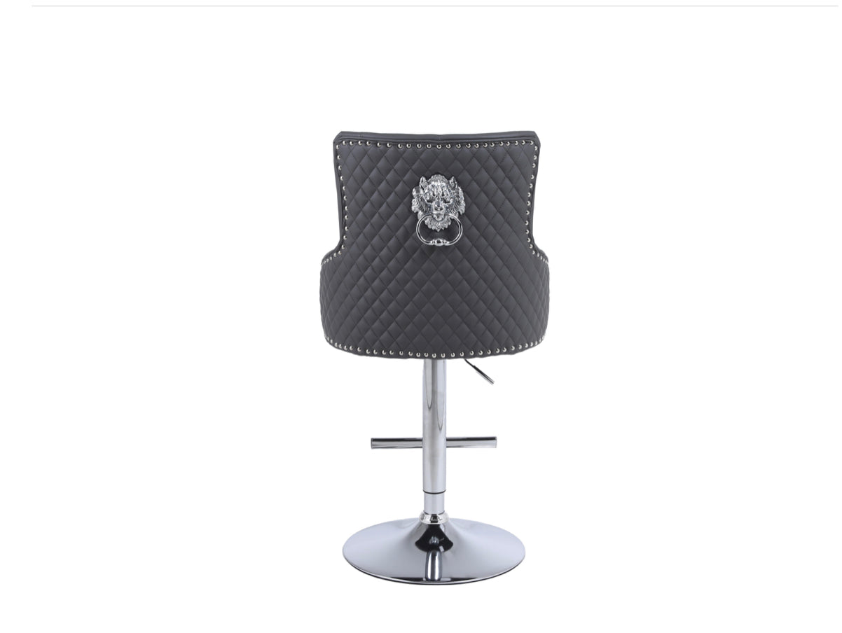 Majestic Dark Grey Pu Leather Lion Knocker Bar Stool