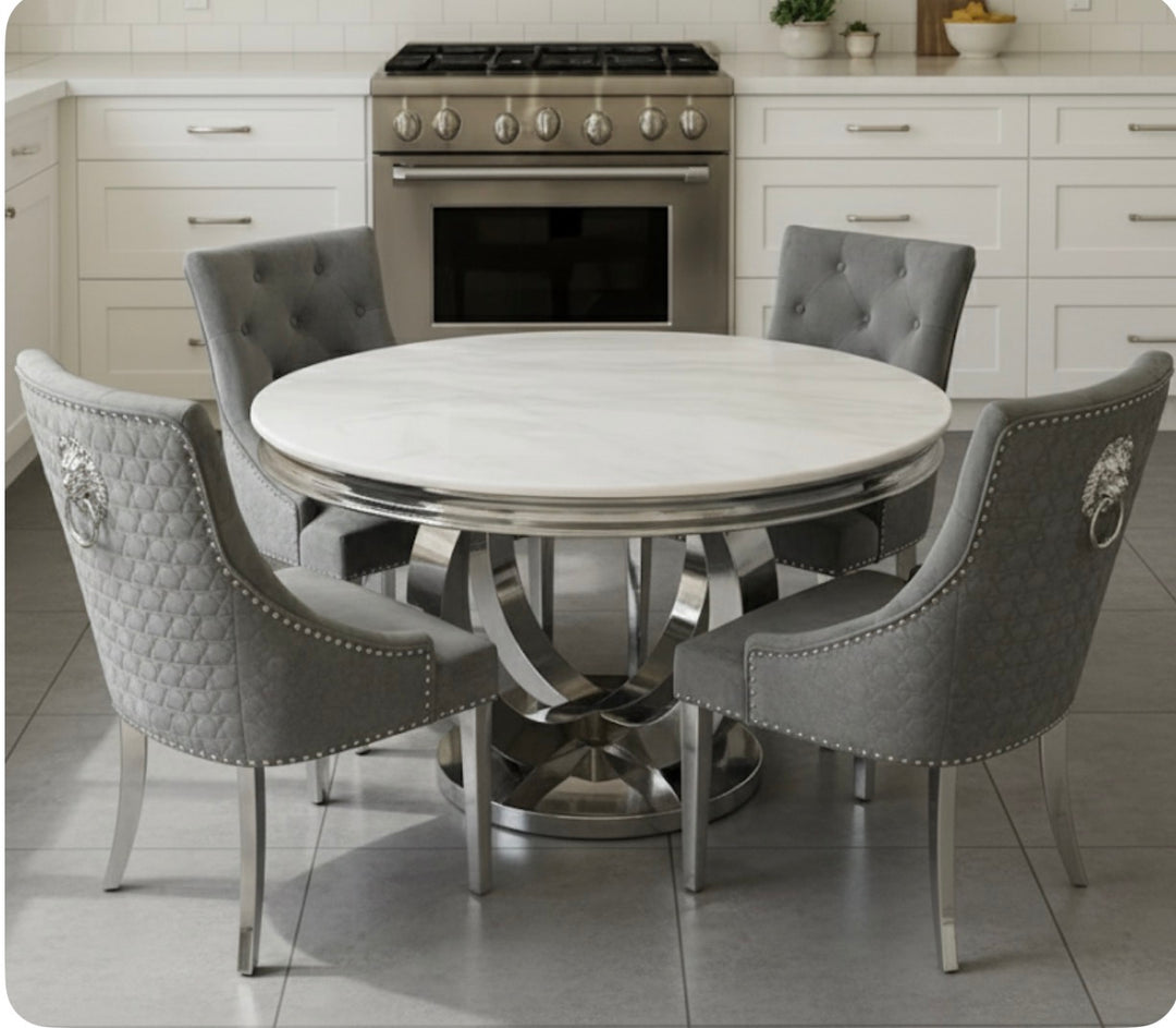 Elevate your dining experience with our luxurious marble dining sets. Featuring premium marble dining tables, elegant marble tables with chairs, and sophisticated marble-top dining room tables, Upgrade your dining space with our stunning marble dining table sets, available in Dining table and 4 chairs , Dining table and 6 chairs , Dining table and 8 Chairs , Round Marble Table , Round Dining Table and 4 Chairs , Rectangle Dining Table , Square Dining Table. Each set features a premium marble dining table paired with elegantly designed chairs, creating a perfect blend of luxury and functionality. Whether you're hosting an intimate dinner or a grand gathering, these sets offer timeless style and durability. Explore our collection today to find the ideal marble dining set that complements your home décor and transforms your dining area into a sophisticated haven. Shop now!