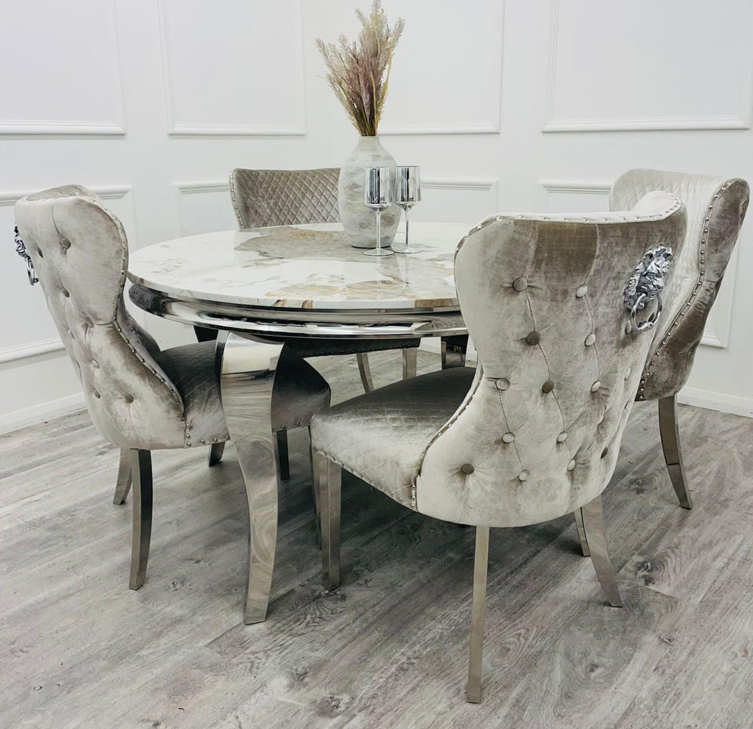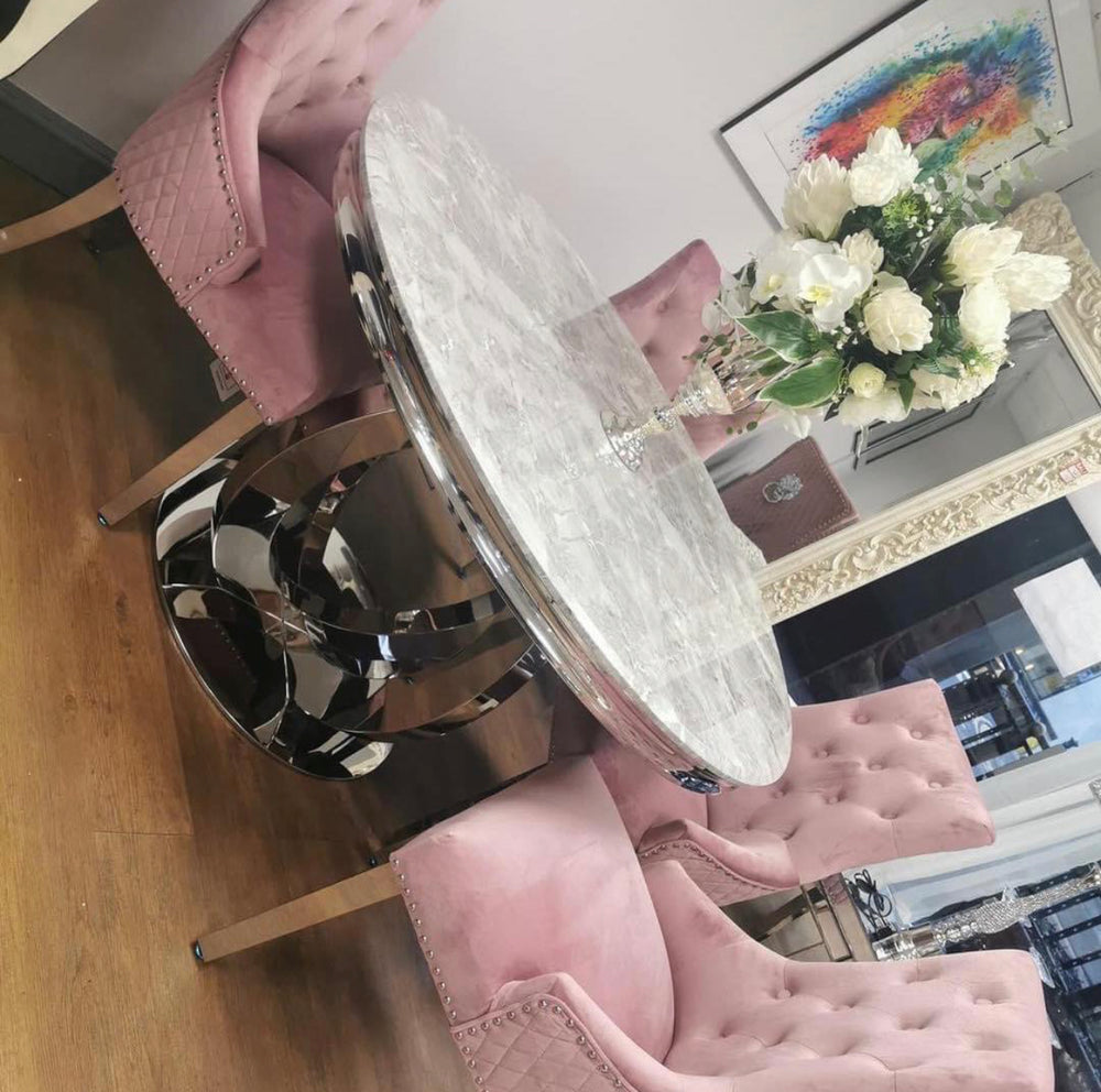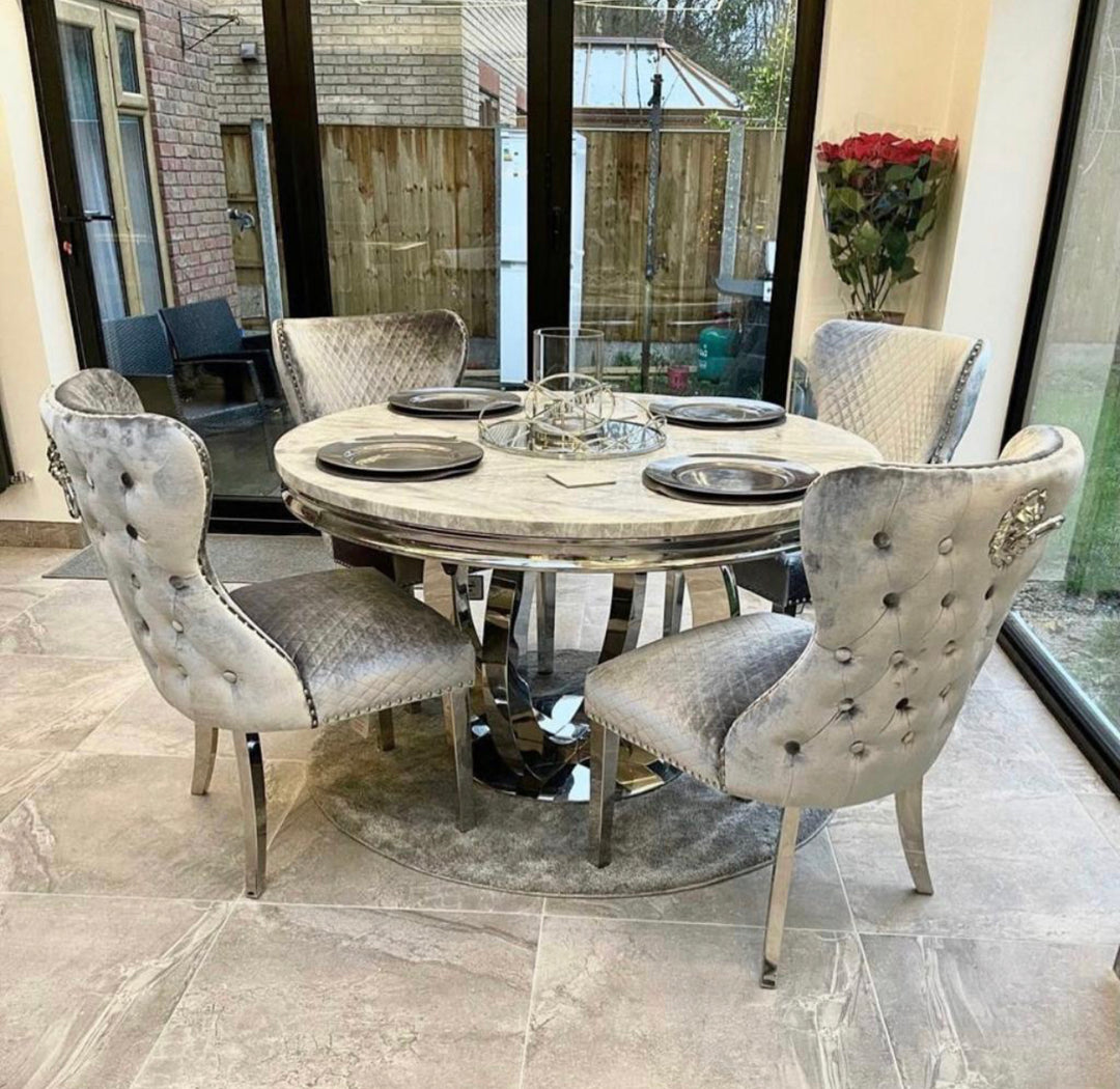 Elevate your dining experience with our luxurious marble dining sets. Featuring premium marble dining tables, elegant marble tables with chairs, and sophisticated marble-top dining room tables, Upgrade your dining space with our stunning marble dining table sets, available in Dining table and 4 chairs , Dining table and 6 chairs , Dining table and 8 Chairs , Round Marble Table , Round Dining Table and 4 Chairs , Rectangle Dining Table , Square Dining Table. Each set features a premium marble dining table paired with elegantly designed chairs, creating a perfect blend of luxury and functionality. Whether you're hosting an intimate dinner or a grand gathering, these sets offer timeless style and durability. Explore our collection today to find the ideal marble dining set that complements your home décor and transforms your dining area into a sophisticated haven. Shop now!