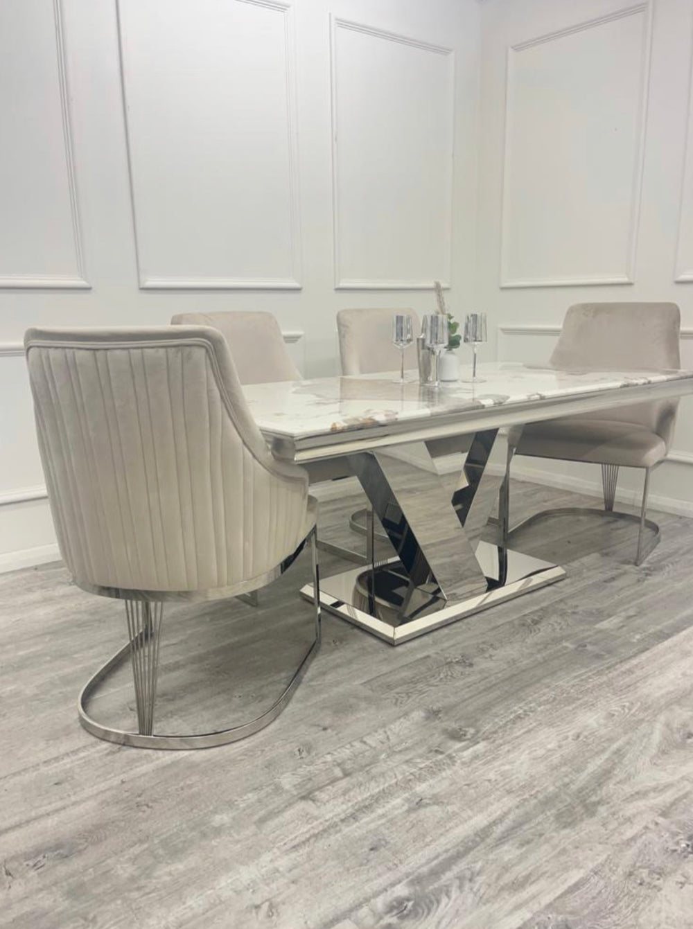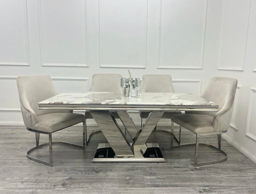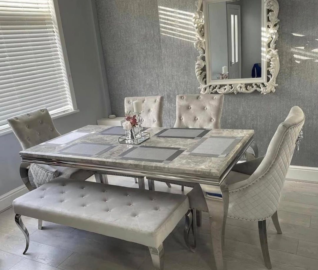 Elevate your dining experience with our luxurious marble dining sets. Featuring premium marble dining tables, elegant marble tables with chairs, and sophisticated marble-top dining room tables, Upgrade your dining space with our stunning marble dining table sets, available in Dining table and 4 chairs , Dining table and 6 chairs , Dining table and 8 Chairs , Round Marble Table , Round Dining Table and 4 Chairs , Rectangle Dining Table , Square Dining Table. Each set features a premium marble dining table paired with elegantly designed chairs, creating a perfect blend of luxury and functionality. Whether you're hosting an intimate dinner or a grand gathering, these sets offer timeless style and durability. Explore our collection today to find the ideal marble dining set that complements your home décor and transforms your dining area into a sophisticated haven. Shop now!