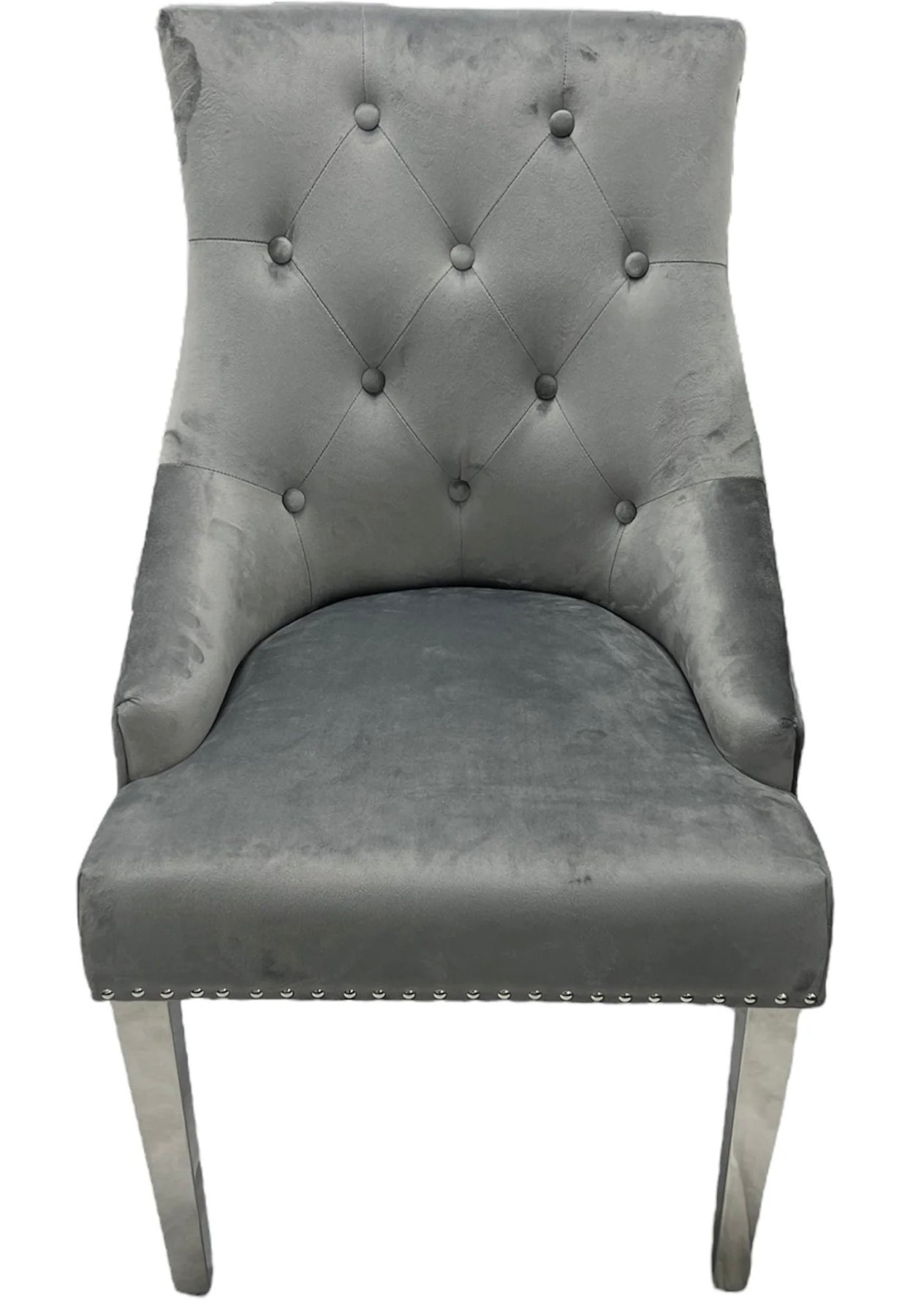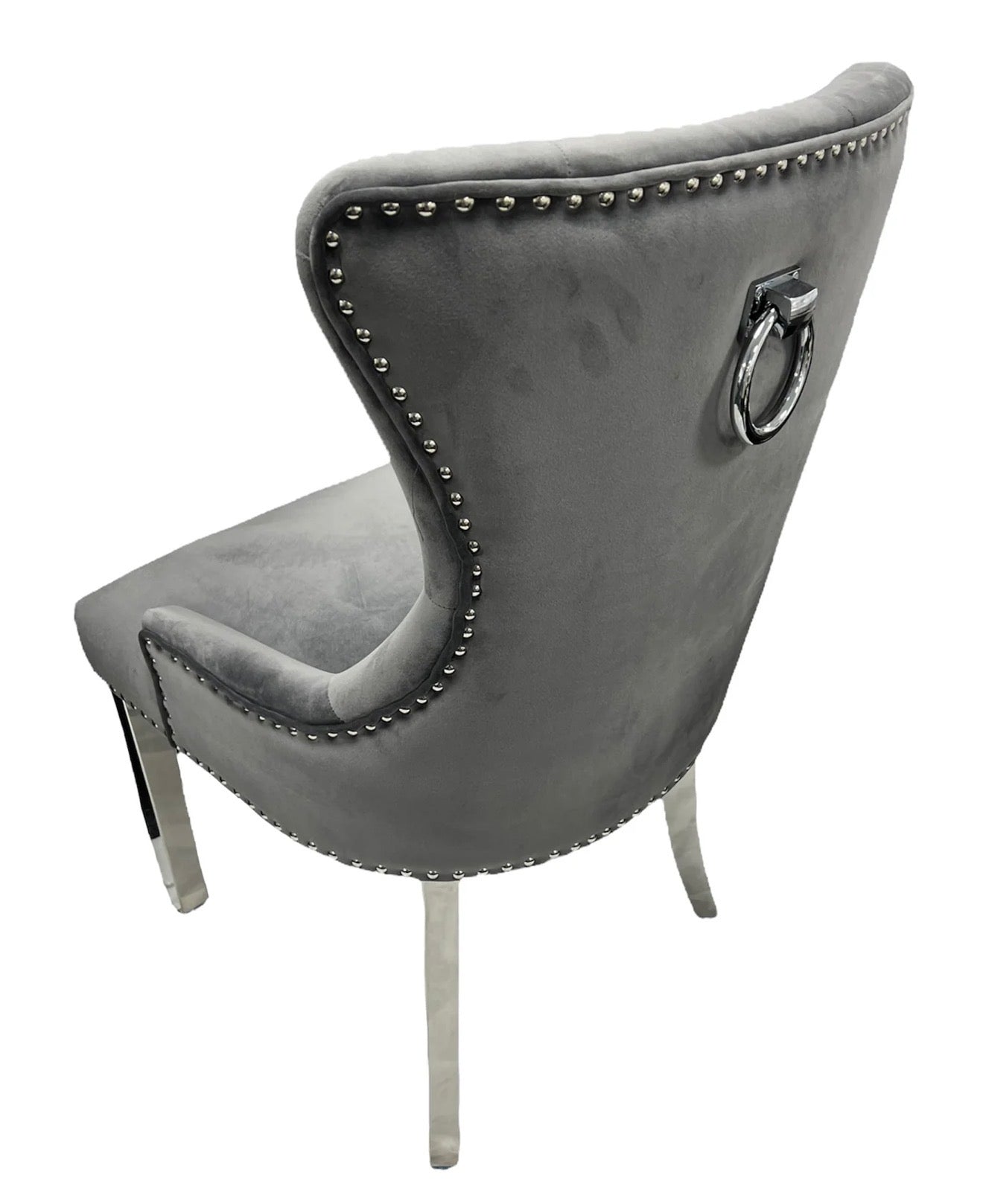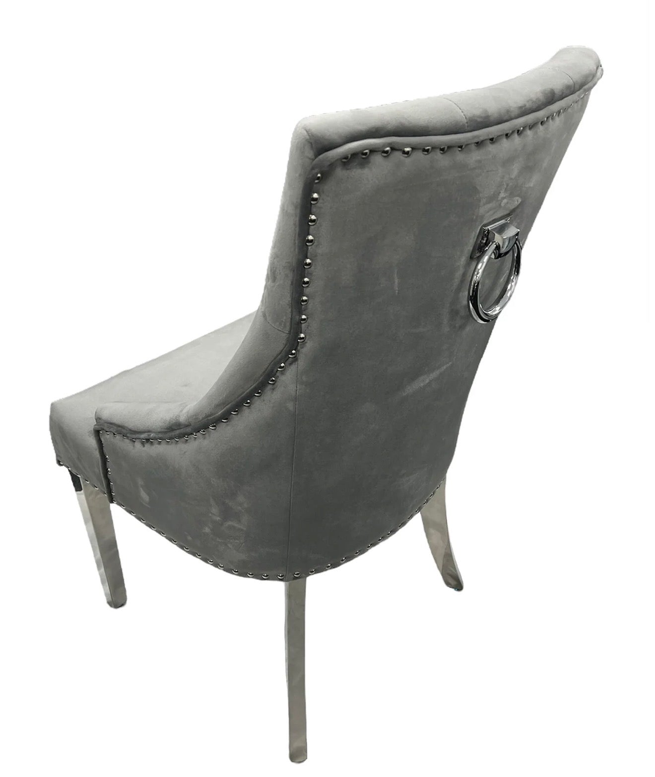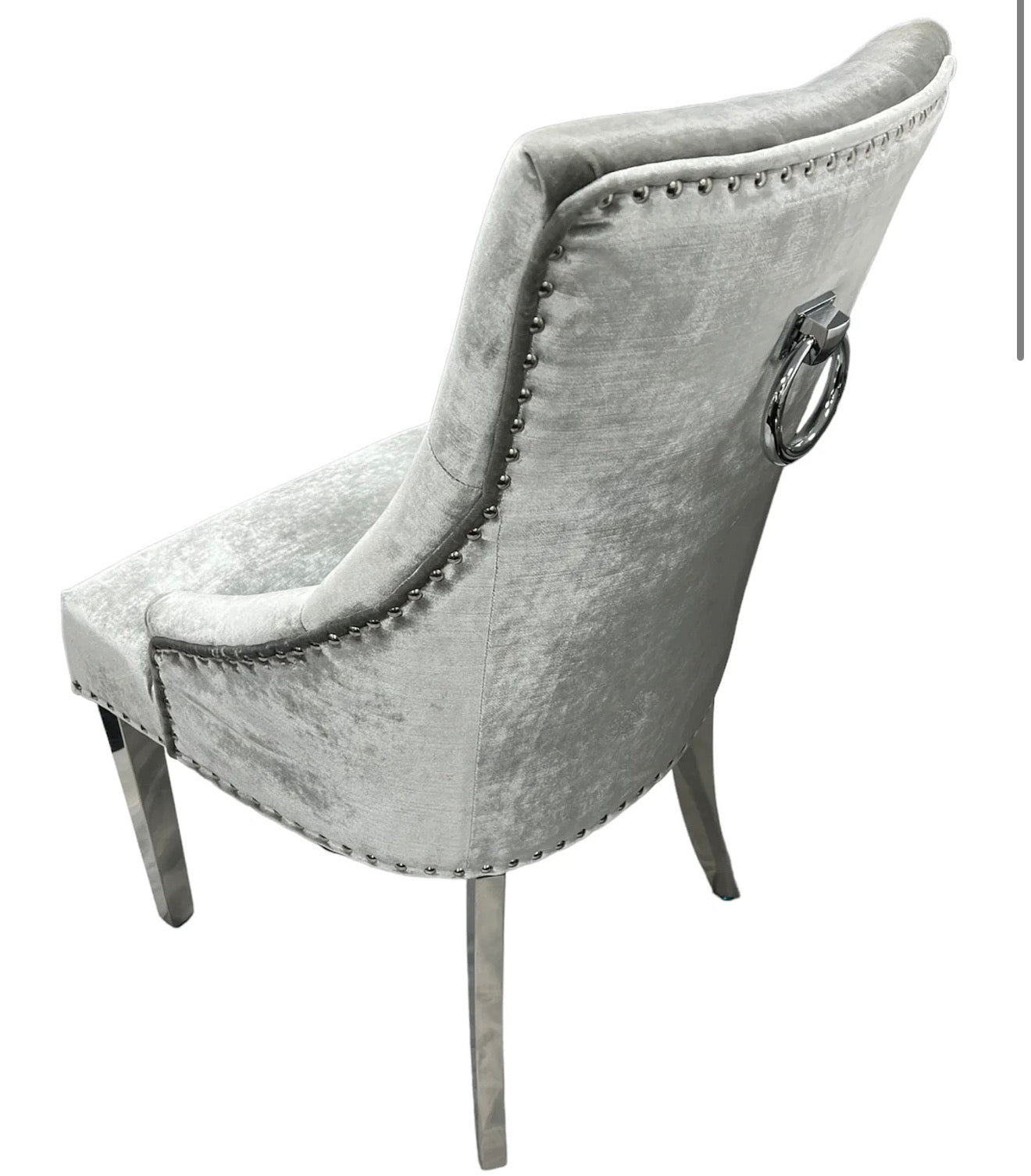 1.3M Chealse Round Marble Dining Set With Jessica Chairs Ring Knocker