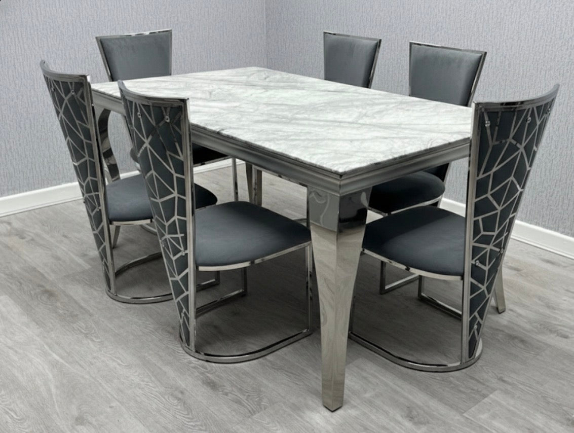 Louise Grey Marble Dining Table with Vienna Dark Grey Chairs | Modern Marble Dining Set