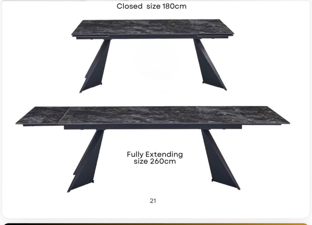 Extendable Ceramic Dining Table 180–260cm – Black Top & Black Legs