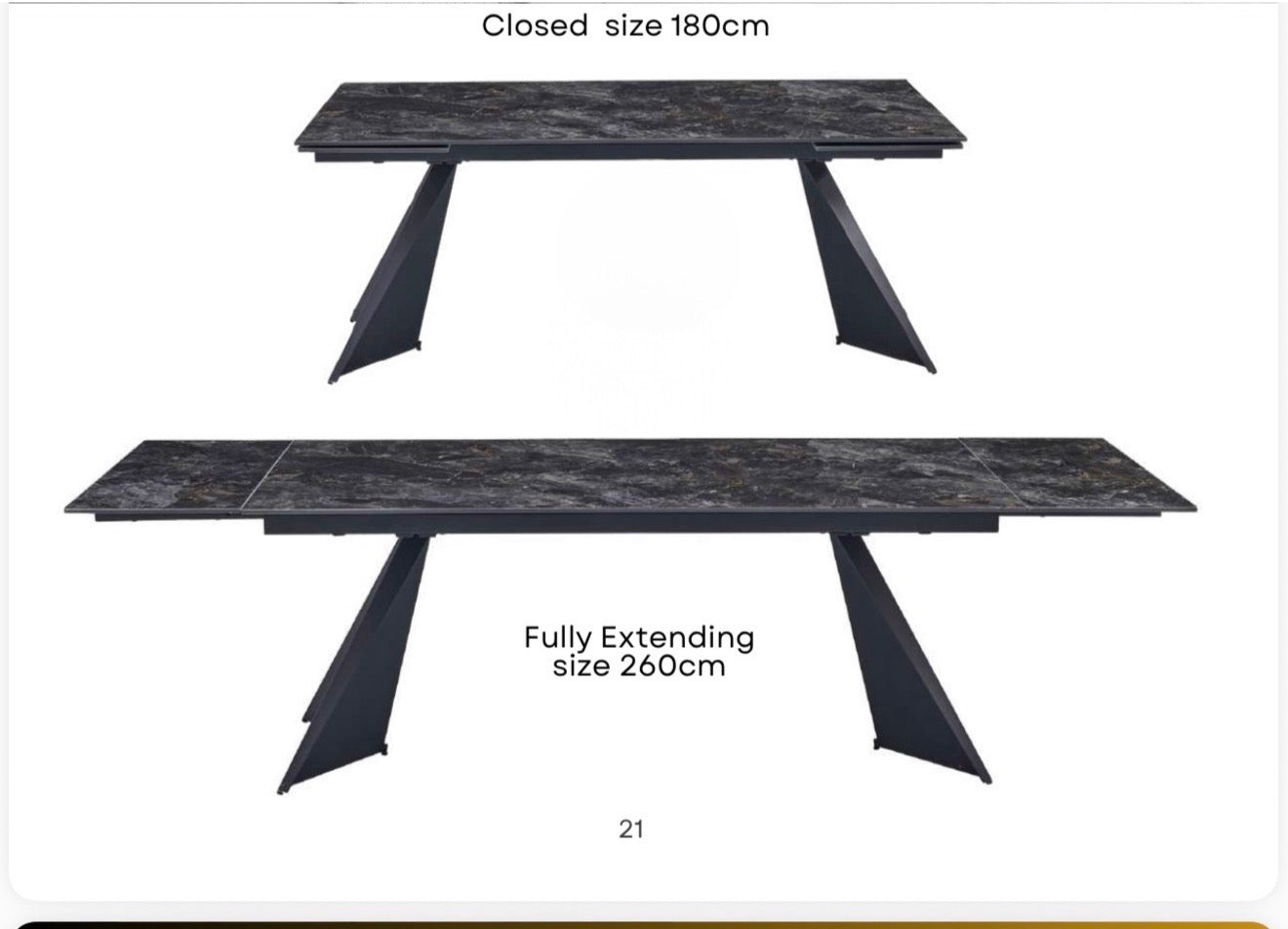 - Extendable dining table: 180cm → 260cm