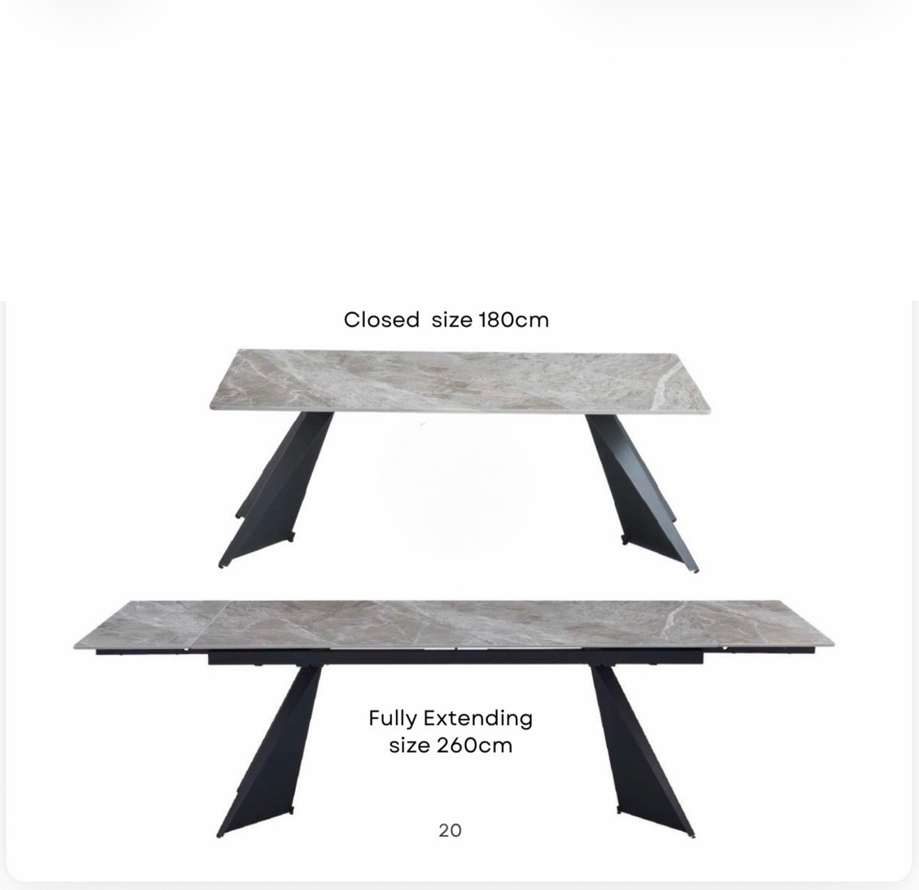 Extendable Ceramic Dining Table 180–260cm – Grey Top & Black Legs